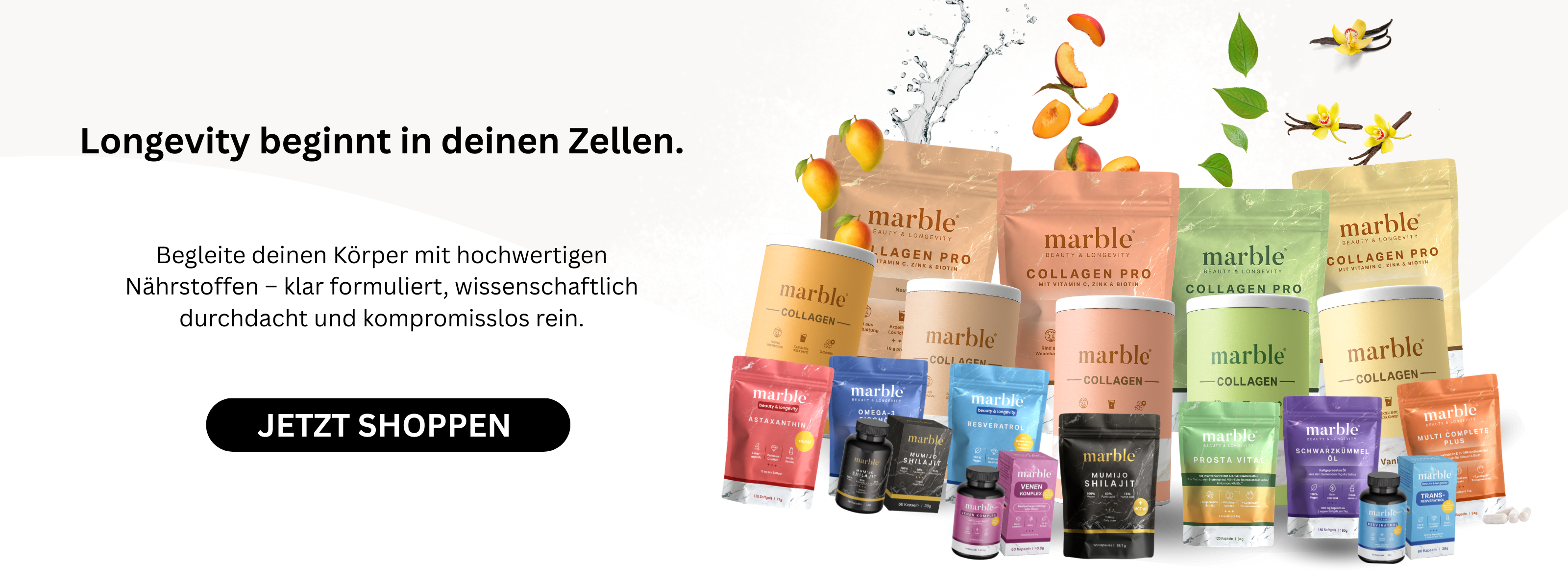 marble Collagen Neutral besteht aus 100 % reinem Kollagenhydrolysat (Rind) – ohne Zusätze, ohne Aromen, ohne Zucker. Das Pulver löst sich besonders gut auf und kann dank seines neutralen Geschmacks flexibel in warme und kalte Getränke oder Speisen eingerührt werden.ZutatenKollagenhydrolysat (Rind).AnwendungsempfehlungTäglich 1 Esslöffel (ca. 10 g) in ein Getränk deiner Wahl einrühren. Das Pulver ist geschmacksneutral und vielseitig einsetzbar.HinweisNahrungsergänzungsmittel sind kein Ersatz für eine ausgewogene und abwechslungsreiche Ernährung sowie eine gesunde Lebensweise. Die angegebene tägliche Verzehrmenge nicht überschreiten. Außer Reichweite von kleinen Kindern aufbewahren.Löslichkeit & VerwendungDas feine Pulver ist leicht löslich und kann in Kaffee, Tee, Smoothies, Wasser oder Joghurts eingerührt werden – ohne den Geschmack zu verändern.Qualität & HerkunftHergestellt in Deutschland.Laborgeprüft.Glutenfrei & laktosefrei.Nährwerte pro 100 g / pro Portion (10 g)Brennwert: 1564 kJ / 368 kcal | 156 kJ / 37 kcalFett: 0 g | 0 gdavon gesättigte Fettsäuren: 0 g | 0 gKohlenhydrate: 0 g | 0 gdavon Zucker: 0 g | 0 gBallaststoffe: 0 g | 0 gEiweiß: 92 g | 9,2 gSalz: 0,50 g | 0,05 gKollagen: 100 g | 10 gNettofüllmenge450 g (45 Portionen)AufbewahrungKühl, trocken und lichtgeschützt lagern. Nach dem Öffnen gut verschließen.