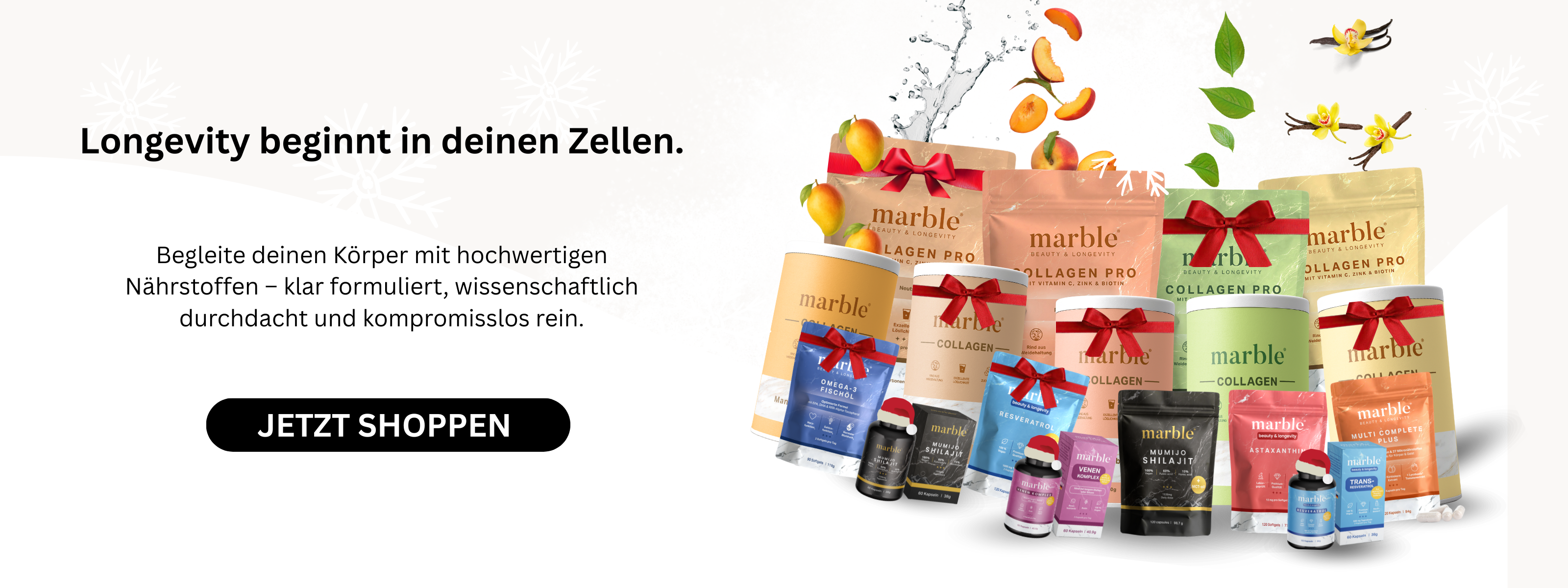 marble Collagen Neutral besteht aus 100 % reinem Kollagenhydrolysat (Rind) – ohne Zusätze, ohne Aromen, ohne Zucker. Das Pulver löst sich besonders gut auf und kann dank seines neutralen Geschmacks flexibel in warme und kalte Getränke oder Speisen eingerührt werden.ZutatenKollagenhydrolysat (Rind).AnwendungsempfehlungTäglich 1 Esslöffel (ca. 10 g) in ein Getränk deiner Wahl einrühren. Das Pulver ist geschmacksneutral und vielseitig einsetzbar.HinweisNahrungsergänzungsmittel sind kein Ersatz für eine ausgewogene und abwechslungsreiche Ernährung sowie eine gesunde Lebensweise. Die angegebene tägliche Verzehrmenge nicht überschreiten. Außer Reichweite von kleinen Kindern aufbewahren.Löslichkeit & VerwendungDas feine Pulver ist leicht löslich und kann in Kaffee, Tee, Smoothies, Wasser oder Joghurts eingerührt werden – ohne den Geschmack zu verändern.Qualität & HerkunftHergestellt in Deutschland.Laborgeprüft.Glutenfrei & laktosefrei.Nährwerte pro 100 g / pro Portion (10 g)Brennwert: 1564 kJ / 368 kcal | 156 kJ / 37 kcalFett: 0 g | 0 gdavon gesättigte Fettsäuren: 0 g | 0 gKohlenhydrate: 0 g | 0 gdavon Zucker: 0 g | 0 gBallaststoffe: 0 g | 0 gEiweiß: 92 g | 9,2 gSalz: 0,50 g | 0,05 gKollagen: 100 g | 10 gNettofüllmenge450 g (45 Portionen)AufbewahrungKühl, trocken und lichtgeschützt lagern. Nach dem Öffnen gut verschließen.
